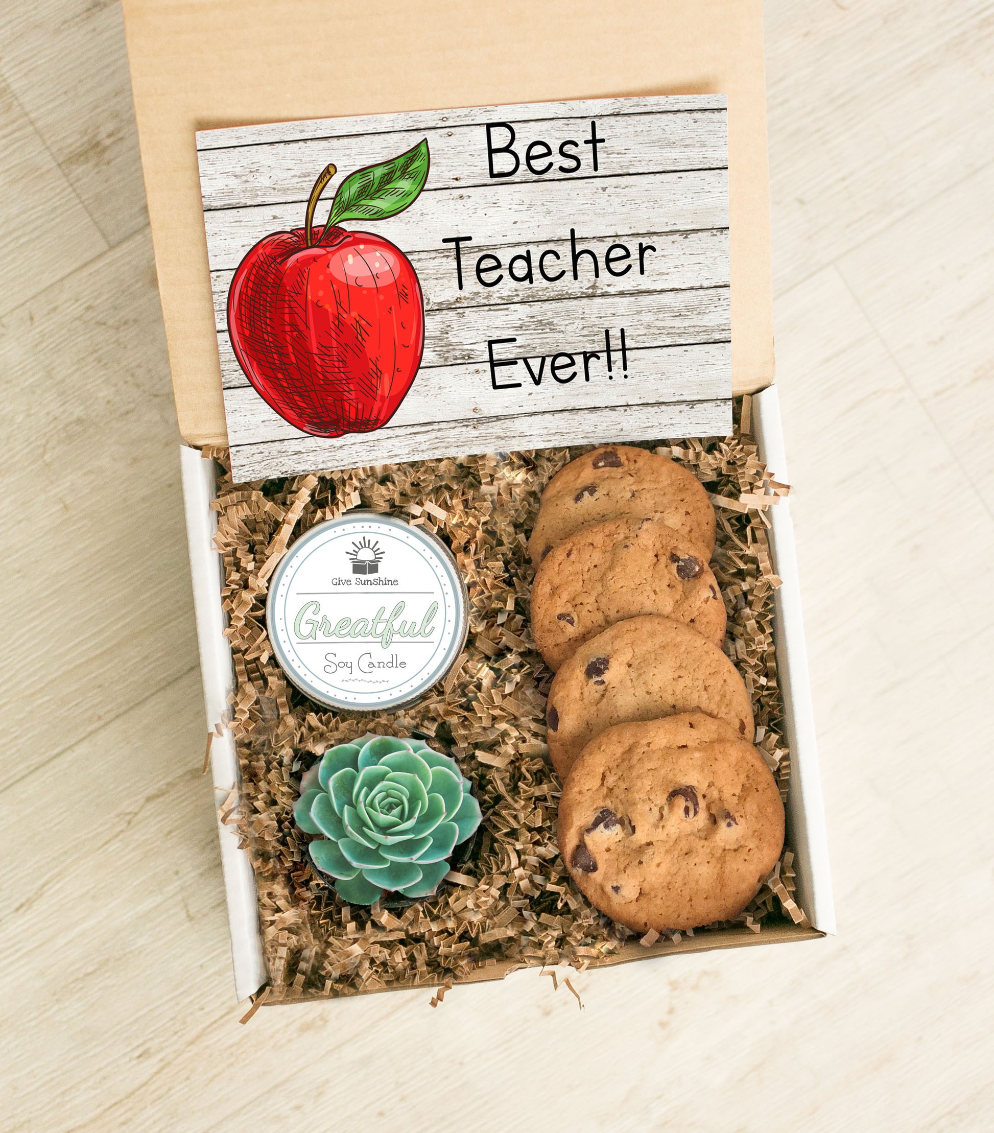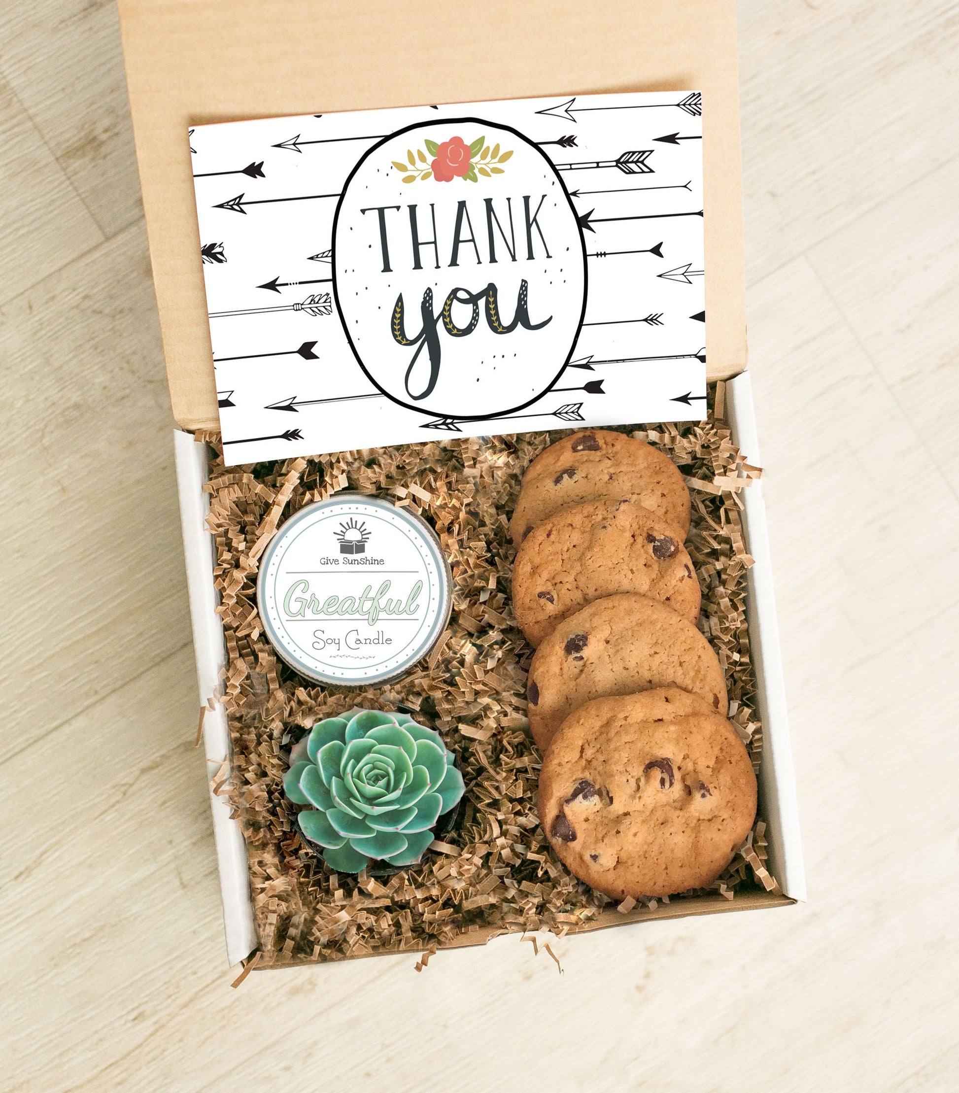 Our succulent are grown locally, and my 6-year-old helps water the plants weekly with her watering can. Our uniquely scented candles are hand poured, and the cookies are freshly baked from a local bakery.