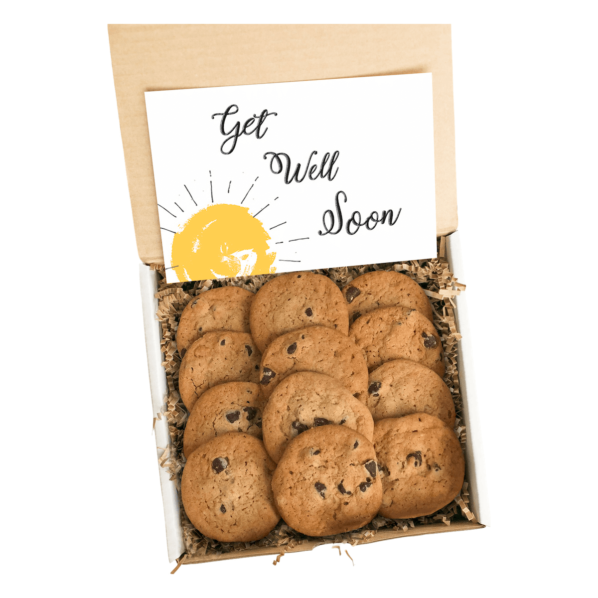 A Dozen Fresh-Baked Chocolate Chip Cookies: Embark on a culinary journey with a dozen freshly baked chocolate chip cookies. Each cookie is a 1 oz burst of pure cookie heaven, and you'll find two cookies in each package.